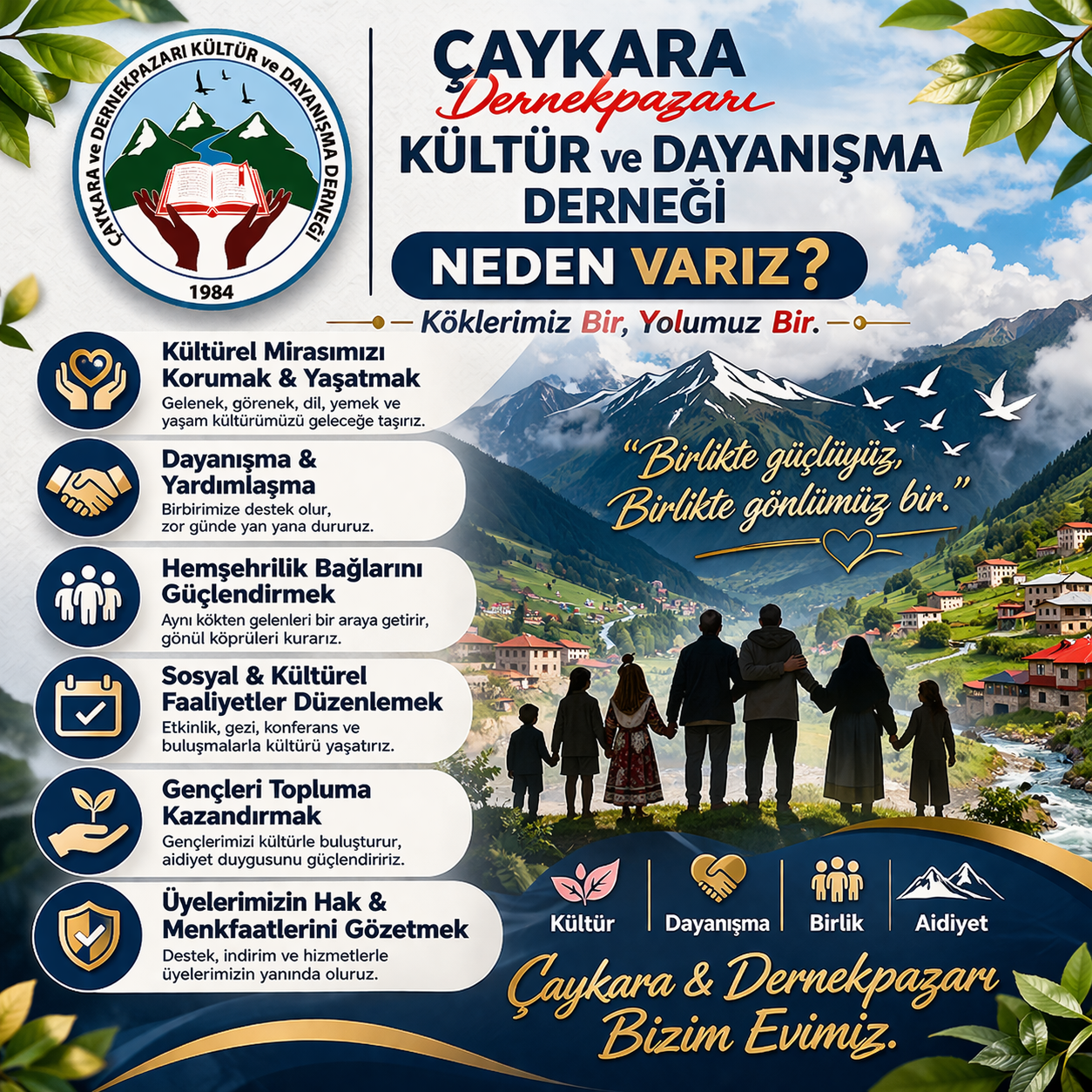 Biz, Çaykara ve Dernekpazarı’nın Dünya, Türkiye ve Trabzon genelinde özel bir yer olduğunu düşünüyoruz. Elbette ki tüm dünyada olduğu gibi Trabzon’da da ayrı bir önem teşkil ediyoruz.