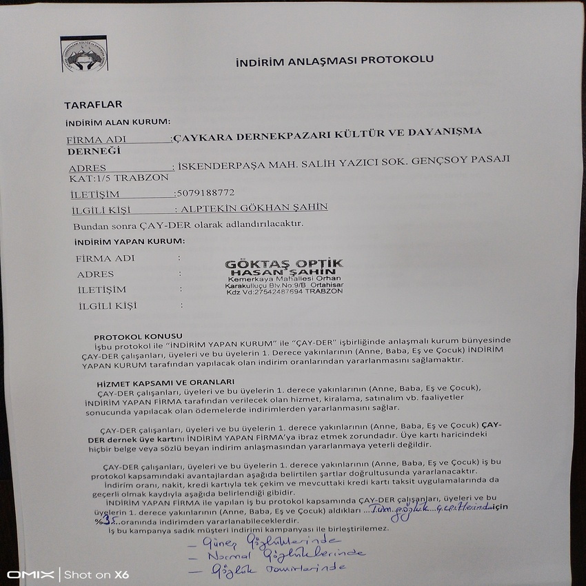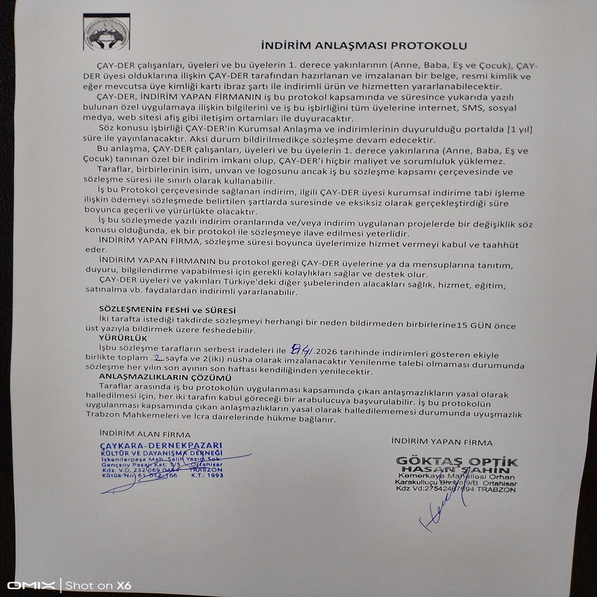 Bu kapsamda, Göktaş Optik & Lens ile derneğimiz arasında özel bir indirim anlaşması gerçekleştirilmiştir. Yapılan anlaşma doğrultusunda dernek üyelerimiz; gözlük çerçevesi, cam, lens ve diğer optik ürünlerde belirli oranlarda indirimli olarak faydalanabilecektir.