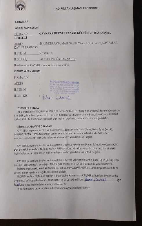 Alacağınız hizmetlerde %10 indirim uygulamayı taahhüt eden şirket yöneticisi İlker ÇAKIR, bir Çaykaralı olarak hemşerilerimiz için kaliteli hizmeti uygun fiyat ile buluşturup işlerinizi kolaylaştırmak en büyük arzumuz. Üye kartını gösteren tüm üyelerimiz bu indirimden yararlanabilecektir dedi.
